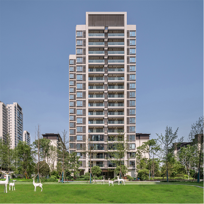 設(shè)計(jì)充分結(jié)合成都地區(qū)日照的優(yōu)勢(shì),以半圍合布局為主,形成空間組團(tuán),并分區(qū)導(dǎo)入景觀(guān)主體園林,實(shí)現(xiàn)了高強(qiáng)度開(kāi)發(fā)并保障社區(qū)優(yōu)質(zhì)